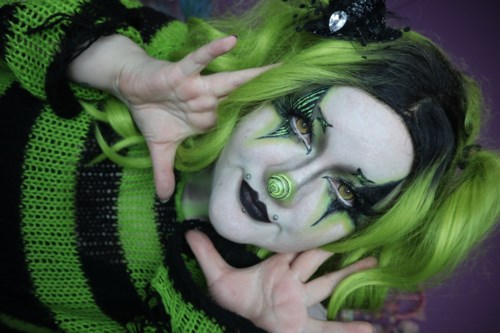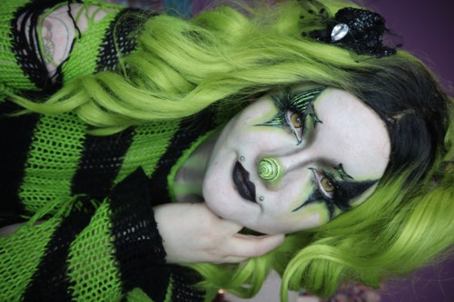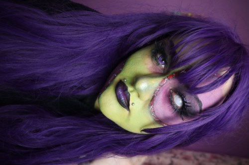 Grün und lila sind eine meiner Lieblingsfarbkombinationen, also wollte ich etwas in dieser Art machen! Ich habe sowohl mit einer schwarzen als auch mit einer lila Perücke ausprobiert, ich hätte gerne mit einer anderen lila Perücke ausprobiert, aber ich hatte keine Lust, unter all meinen Perücken zu suchen cx #halloween256 products in post Gestern's Make-up ~299 Ansichten