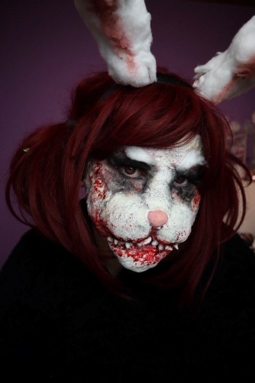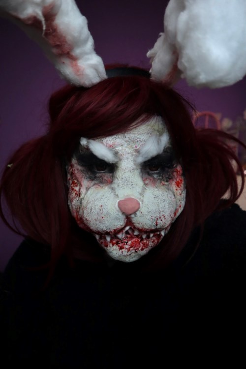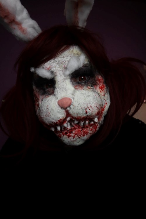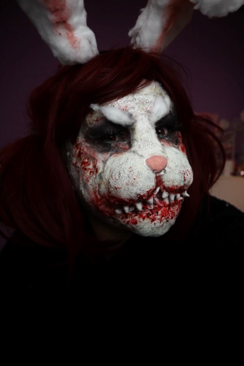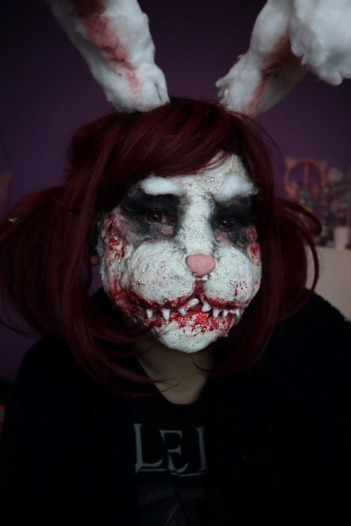 Das Make-up von gestern! Mein erster Gedanke war, dass ich einen Hasen machen wollte, der in die süße Richtung geht, aber gleichzeitig ein bisschen blutig, aber dann wollte ich zu einem deutlich blutigeren Make-up übergehen, ich weiß nicht genau, wie mein müder Kopf dachte, aber nichts lief wie geplant und ich hasste das Ergebnis. Ich wünschte, ich hätte die "Nase" etwas höher gesetzt und alles andere ein bisschen anders gemacht, aber es wurde, wie es wurde, und ich denke, ich lade es trotzdem hoch, obwohl ich mitten im Ganzen einfach alles abreißen und ins Bett gehen wollte cx Füge ein Bild während des Prozesses hinzu, wo man vielleicht trotzdem einen kleinen Eindruck davon bekommen kann, was ich mir von Anfang an vorgestellt habe, und auch, wie es aussah, als ich es danach abgenommen habe cx #halloween25