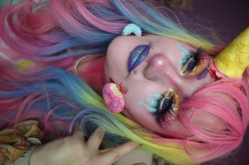 Das Make-up von gestern!🍦🍩 Ich hätte es eigentlich detaillierter machen und einige Dinge verbessern wollen, ich wollte, dass eine Eistüte auf meiner Stirn ist, aber ich wollte etwas Eis machen, das über mein Gesicht läuft, dann wurde die Waffel nicht wirklich gut, aber ich war zu müde, um das zu beheben (ich habe mehrere Pausen gemacht, weil ich Schwierigkeiten hatte, still zu sitzen, und plötzlich war es halb 2 nachts) Ich habe auch sowohl die Eistüte als auch die Donuts gleichzeitig gemacht, während ich mich geschminkt habe, also hatte ich nicht viel Zeit, um alles zu machen. Ich war auch viel rosafarbener im Gesicht, aber das sieht man auf den Bildern überhaupt nicht? Ich hatte auch zu Beginn 2 verschiedene Farben in den Linsen, aber ich fand, dass es nicht gut aussah, also habe ich auf lila für beide Augen gewechselt!💜 #halloween25
