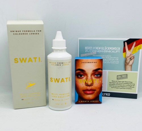 Swati Mehrzwecklösung ist eine All-in-One-Lösung, die sich ideal zur Desinfektion, Reinigung, Aufbewahrung und Befeuchtung aller weichen und farbigen Kontaktlinsen eignet.