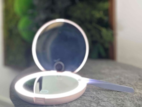 I spontaneously bought this because I thought it looked small and handy. And it is! Larger than a regular pocket mirror but a bit smaller than wall makeup mirrors, for example. Easy to charge with the cable. The downside in my opinion is that it lights up too bright. #lykoreview1 product in post Cute, 5x magnification and rechargeable2471 views- The comment was made 7 monthsYou can decrease the brightness by holding down the start button🤗1 likes
