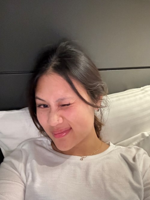 Aldri funnet en fuktighetskrem som både funker om dagen og natten. Huden min føles hydrert og glowy med og uten sminke! Bruker denne morgen og kveld + natt (+/- natt maske/krem innimellom). Kan se at den har en slags hvit film men du kan masseres litt på fingertuppene og rundt om på ansiktet for best resultat. Jeg har veldig tørr og uproblematisk hudtype. Bestiller nå tube 2. Har nå testet denne i Bergen, Norge. Seoul og Busan, Sør-Korea. Bangkok, phuket og Phiphi, Thailand. B1: Busan uten sminke, natt. Toner, fuktighetskrem og +/- natt krem/maske. B2: Seoul med sminke B3: Phuket med sminke B4: Phiphi med sminke B5: Bangkok uten sminke På turene har jeg brukt C vitamin, toner, fuktighetskrem, solkrem om dagen + kveld om solen ikke har gått ned. B6: Bergen uten sminke. B7: Bergen med sminke. I Bergen bruker jeg alpha arbutin (serum) x2 dagen, fuktighets krem og solkrem (hver dag). Niacinamide (serum) x1 kvelden, +/- natt krem/maske. Alltid dobbel rens på kvelden med solkrem og sminke.