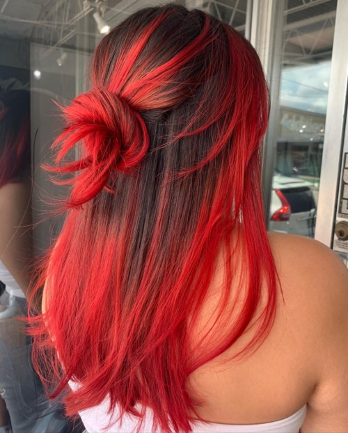 - The post was made 4 years🖤 Split hair dye 🖤 Hair color creation by @steffscissors_salon Create, maintain, and refresh this vivid hair color using our Viral Red #Colorwash and Magenta #Colorditioner on pre-lightened hair #celebluxury25 views