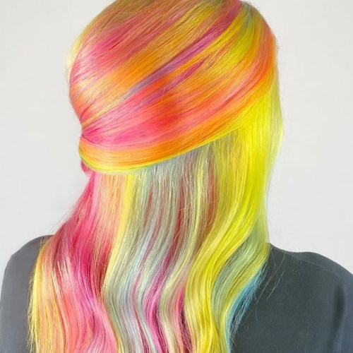- The post was made 4 years“ROYAL RAINBOW 🌈 by @chelseabrebeauty ✨“Painted this beauty with all @celebluxury 🥰 I alternated Purple, Red,Light Pink, Turquoise , and Yellow Colorwash on her ends. Then a bold color melted money piece! 🎉 “ #lyko #celebluxury #vividhair #haircolor #hairinspo #veganhairproducts #cleanbeauty #gemlites18 views