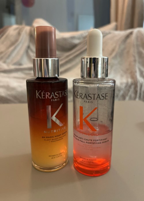 I have had the honor of testing two products from Kérastase for 5 weeks: Genesis Serum Anti Chute Fortifiant and Nutritive 8H Overnight Serum, and my first impression was that both packages feel very luxurious. The products also smell incredibly good and the scent lingers for a long time, which I personally like, but it might be perceived as too much if you are sensitive to strong scents. 💘 I always applied the Genesis Serum Anti Chute Fortifiant to my scalp in the evening. I have very fine and thin hair and was initially a bit worried that the serum would make my hair greasy, but it did not at all. In the morning, there were no traces of the product left. I can't really comment on whether it has helped with hair loss, but it feels very soothing and cooling on the scalp and has become a cozy part of my evening routine. However, I find that the product is quite not economical in relation to the price, it runs out quickly. The Nutritive 8H Overnight Serum for the lengths was also very pleasant to use. It smells good, moisturizes the hair nicely, and gives a nice shine. I mostly used it before I braided my hair or did heatless curls overnight, and my hair felt soft and well-cared for in the morning. For my hair, which is quite thick with fine strands, I needed at least 4 pumps every evening, which made this product also not particularly economical (I haven't used it every night). Here too, I think the price is quite high and there are cheaper alternatives that give similar results (amikas), which I might go back to. But I will definitely use up the product. In summary, both products are very luxurious and fragrant, but in my opinion somewhat overhyped considering the price. A lovely luxury addition to the hair care routine but maybe not a must since there are similar products. 👼🏼 #lykotestpilot #kerastase1 product in post Lovely feeling but high price tag39 views - The post was made 7 hoursRating: 4 out of 5