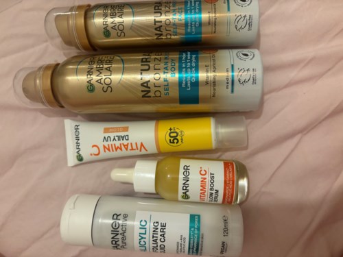 I think this self-tanning spray from Garnier is really good! It’s super easy to use and the mist feels light and fresh on the skin. It dries quickly and doesn’t stick, which is a big plus. The color turns naturally golden and not orange, but for me, two layers were needed to get a clear result. What can be a bit tricky is that the spray is transparent, so you can’t really see where you’ve applied it. You have to be quite careful to avoid streaks. Another thing to keep in mind is that it has a pretty strong scent. If you’re sensitive to smells, it might be good to refrain or at least test cautiously first. The review was conducted on behalf of Smartson - the test pilot was allowed to try the product for free.1 product in post Natural color and easy application – but strong scent57 views - The post was made 2 monthsRating: 4 out of 5