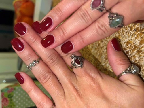 Olen nyt #lykoinflutesterinä testannut "yksinkertaista kotimanikyyriä" #LOVENLAYERilta ja rakastan sitä!🤩 Olen henkilö, joka joskus voi olla vaikeaa levittää kynsilakkaa kauniisti, (😂) joten olin hieman skeptinen sen suhteen, onnistuisinko tässä. Mutta seurasin vaiheita, jotka Love’n Layerilla on verkkosivustollaan, ja onnistuin loistavasti! Yksinkertaista, sujuvaa ja nopeaa se oli! Oli niin helppoa mitata, mikä koko pitäisi olla millekin kynnelle, ja Layerin kiinnittäminen itse kynteen oli myös todella helppoa. Vain yhdestä sormesta en ollut supertyytyväinen. Leikkasin sen hieman liian lyhyeksi. Mutta olen silti vaikuttunut itsestäni, että onnistuin.🤩 5/5 siitä, kuinka yksinkertaista se oli, yksinkertaisesti!✨ Ja tulos oli uskomaton. Manikyyri, jonka tein itse kotona.😍 Kestävyys, joo, minun on silti annettava sille 5/5 myös. Minulla oli kerrokset päällä viikon! 😍 ja vain kaksi kynsistäni oli silloin lohjennut! Mutta sitten on vain vaihdettava ne! 😍 Olin myös skeptinen burgundy-red-väriä kohtaan, mutta vau, kuinka rakastin sitä! ❤️ Sain niin paljon kehuja tämän viikon aikana, etten voi melkein laskea! Arviointi on siksi erittäin yksinkertainen, 5/5 aion kokeilla lisää värejä!🥳