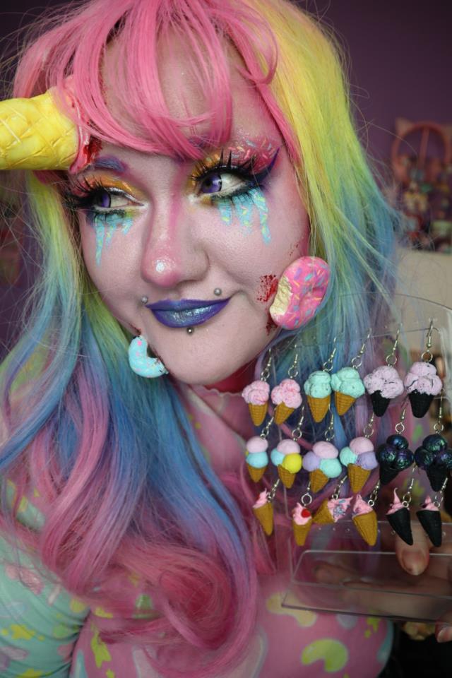 Eilisen meikki!🍦🍩 Olin oikeastaan halunnut tehdä siitä yksityiskohtaisemman ja parantaa joitakin asioita, halusin, että jäätelötötterö olisi otsassa, mutta halusin tehdä jäätelöä, joka valuisi alas kasvoilleni, sitten tötterö ei oikein onnistunut, mutta olin liian väsynyt korjatakseni sen (otin useita taukoja, koska minulla oli vaikeaa olla paikallani ja yhtäkkiä kello oli puoli 2 yöllä) Tein myös sekä jäätelötötterön että donitsit samalla kun meikkasin, joten en ehtinyt tehdä kaikkea liikaa. Olin myös paljon pinkimpi kasvoilta, mutta se ei näy lainkaan kuvissa? Olin myös aluksi kahdessa eri värissä linsseissä, mutta tunsin, etten pitänyt siitä, miltä se näytti, joten vaihdoin violetiksi molemmissa silmissä sitten!💜 #halloween25