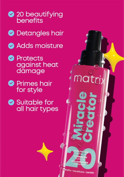 Tired of juggling a million products to get your best hair? 👋 Say goodbye to product overload and hello to your new best friend: Matrix Miracle Creator Multi-Tasking Treatment! 💖 20 Benefits, 1 Amazing Spray 💖 That's right, this little bottle packs a serious punch. Whether your hair is... 🔥 Dry or damaged? Miracle Creator nourishes and minimizes breakage. 😩 Frizzy and unmanageable? Get ready for a smooth, sleek finish. 💔 Prone to breakage from heat styling? This spray is your heat protectant hero! 😴 Just needs a boost of shine and softness? Miracle Creator does that too! ✨ ...No matter your hair concern, Miracle Creator has your back (and your strands!). Here's the 411: ➡️ Spray on towel-dried hair. ➡️ Comb through. ➡️ Style as usual. 💅 The Matrix Difference: We believe in creating products that work for EVERYONE. Our Hair Diversity Matrix ensures that Miracle Creator delivers amazing results for all hair types, textures, and patterns. 🌎 Bonus: We love our planet! Miracle Creator helps you streamline your routine, meaning less product waste. Ready for a miracle? Find Miracle Creator Multi-Tasking Treatment right here at Lyko! #MatrixHair #MiracleCreator #AllHairTypes #HaircareHero #Lyko3792 näyttöä