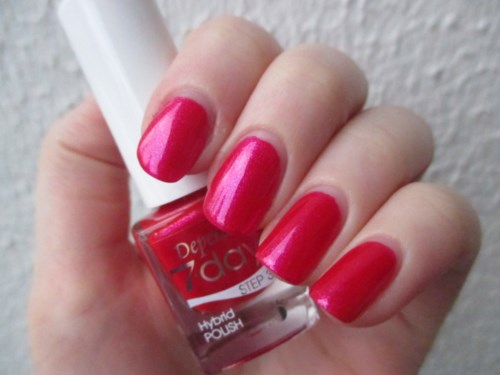 Ei ole oranssi, mitä kuva antaa ymmärtää, vaan on enemmänkin punainen. Lakassa kuitenkin on oranssihtavaa/kultaista shimmeriä. Tämä vaati omille kynsille kolme kerrosta, kerrokset kuivui nopeasti.1 product in post Depend 7day Hybrid, Believe988 näyttöä