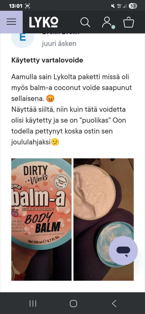 Toi voide saapui minulle tänään 12.12 tällaisena käytettynä 👎 Ostin tämän joululahjaksi ja oon pettynyt 😔