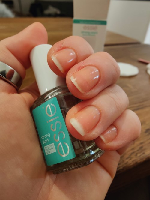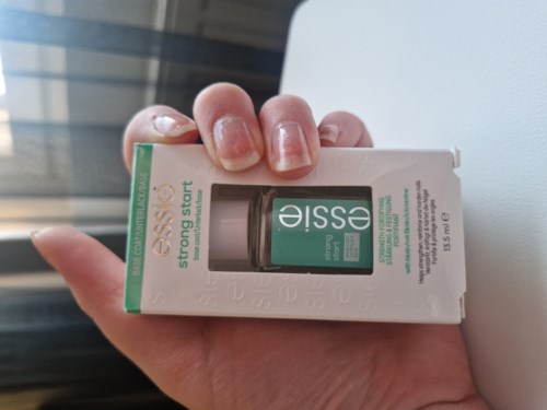 essie strong start -aluslakka tekee kynsistä vastustuskykyisemmät, jolloin ne lohkeilevat, liuskoittuvat ja katkeilevat vähemmän.