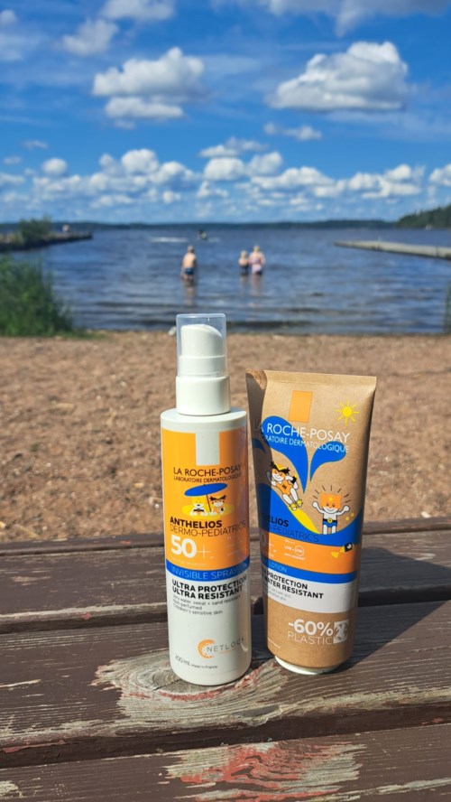 Saimme Smartsonilta kesäksi testattavaksi kaksi erilaista lapsille suunnattua aurinkosuojatuotetta. Tuotetta on nyt testattu niin Suomen kesässä, kuin ulkomailla kunnon helteellä ja paahteella. Koko kesä päästiin palamatta, niin lapset kuin äitikin! Meillä aikuinen, on se helpoiten palavaa sorttia, joten olipas mahtava kesä ! Tuote on mukava iholla, helppo levittää. Oli sitten kyseessä tämä voidemainen tai suihke. Ei juurikaan tuoksua. Pysyy hyvin iholla. Uimaretkillä huomattiin, että välillä näkyi veden pinnassa, jos oli juuri laitettu, tästä pieni miinus. Ehdottomasti ostaisin uudelleen. Suosittelen