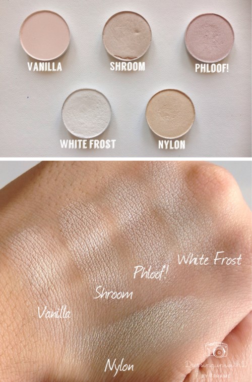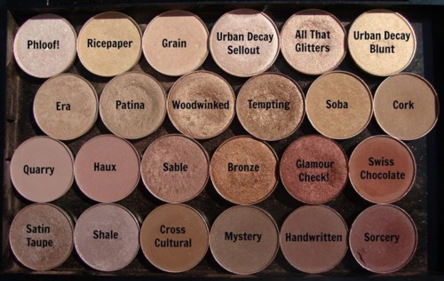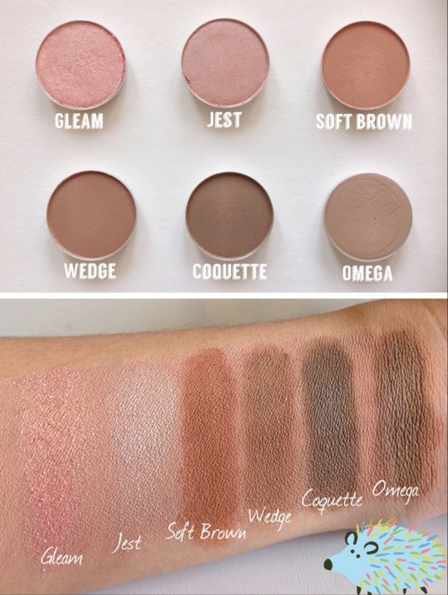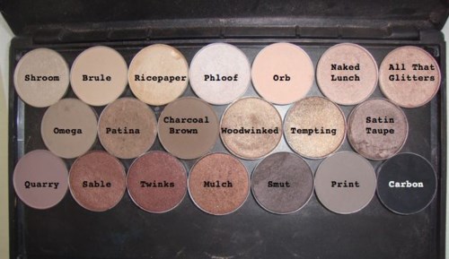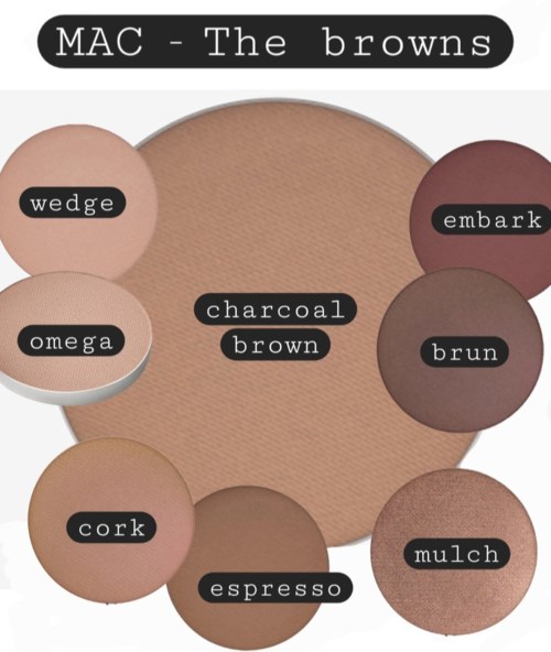 MAC heeft volgens mij de beste oogschaduws op de markt. Alle denkbare tinten en veel verschillende afwerkingen; mat, fluweel, zijde, glitter, metallic, folie, nat, schitterend... Wat je ook zoekt! Ik heb de neiging om maar één of een paar tinten te gebruiken wanneer ik kant-en-klare paletten koop, dus voor mij is het perfect om een eigen palette te kunnen samenstellen, en ik geef al vele jaren de voorkeur aan MAC. Enkele van mijn meest gebruikte favorieten zijn: Satin taupe, Naked Lunch, L.E.S artiste, Wedge, Omega, Shroom en She sparkles. Ik voeg foto's toe met swatches van schaduwen gegroepeerd in vergelijkbare tinten (bruin, licht/wit, enz.) omdat ik zelf vind dat zulke foto's nuttig zijn om verschillen te zien bij het kiezen tussen vergelijkbare tinten📸