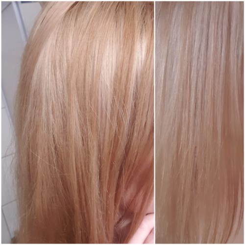 Jeg var litt lei av mitt hvite blonde hår og ville prøve denne masken. Leste at denne Vanilla skulle fungere best på virkelig blond hår, og det ble faktisk veldig bra. En mer naturlig blond beige. Har ikke vasket håret etter, så jeg vet ikke hvor lenge den sitter i. Men jeg kommer definitivt til å bruke den igjen. Ca. halve tuben gikk til mitt middels lange, ganske tynne hår.1 produkt i posten Fin kald lysbeige på hvitt hår1796 visninger - Innlegget ble opprettet 1 måned