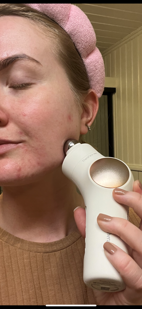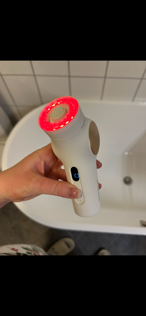 Min hud er varierende utifra både årstid og temperatur, så her kom min lille redning. På sommeren er den typisk fet, blir noe lett solbrent, men alltid en fin farge ved SPF. Vinteren er den mer kombinert mellom fet og tørr, hvor jeg er ekstra nøye med å peele huden og tilføye fukt. Dette herlige produktet kom i en hard eske, pent pakket som en slags gave. Esken er firkantet. Oppi denne esken lå alt du trenger for en magisk opplevelse av et produkt. Det medfølger følgende: - mikrostrømterapi ( enheten med to metallkuler ) - lysterapi, både infrarødt lys og mot foryngende behandling ( rund led-ring ) - rens/massasje ( peelingring ) - 3 forskjellige gummi-hetter - TheraOne Conductive Gel ( jeg brukte vaselin da denne ble tom med samme effekt ) - Toalettmappe/veske - Holde-enhet til apparaet - USB-A til USB-C ladekabel - og selvfølgelig det magiske apparaet i seg selv, TheraFace PRO Hver kveld setter jeg av drøye 5 minutter for en full kveldsrutine som fikk huden min til nye a-ha høyder! Jeg utmerket meg 3 favoritter raskt, microstrømterapi ( jeg brukte grad 2 av 3 ), led-ringen og den knudrede gummihetten. Personlig følte jeg ingen glede over peeling-ringen, da den ikke laget sirkulære bevegelser, men mer enn slags mild "during/massasje" over ansiktet. De to andre hettene ( spiss og flat gummi-ring ) er spesielt utviklet for en dypere rens av f.eks dyp akne eller dypere linjer som krever mer fokus enn en flat ring. Jeg har en relativt aknefri hud, som ei heller har vært utsatt for større akneutbrudd som har resultert i arr eller dype linjer, jeg er derimot svært positiv til å bruke den spisse gimmihetten for disse områdene. Ved bruk av led-ringen ble setting nr 1 og 3 mine favoritter, de har fokus på fine linjer, samt kombinert varmeterapi. Jeg setter alltid på den knudrede hetten, da led-ringen krever en viss avstand fra hud til led-ring, ledlyset reduseres for egen sikkerhet mtp effekt og skadeområde. Du vil IKKE brenne deg under varmeterapien på innstilling nr 3. Jeg brukte samtidig massasjeeffekten ( den lille massasjeknotten, IKKE peelingringen ), sammen med led-ringen, for en dypere hudpleierutine. Jeg tok 3 runder på hver side ( èn runde er på 15. sekunder. ) Etter hvert 15. sekund vil apparatet gi fra seg et lite pip, som minner deg på å bytte side og ha kontroll over timingen på behandlingen. Ved bruk av mikrostrøm ( jeg brukte grad 2 av 3 ), følte jeg en umiddelbar glød og løft i ansiktet. Jeg ble litt rød, noe som vil si at huden har satt i gang sin naturlige blodsirkulasjon. Du vil trolig føle at huden prikker litt, for meg har dette bare vært positivt og gir meg god fortrolighet til apparatets hensikt. ( Det føles ut som lett lugging. ) Derimot ble jeg noe skuffet over peelingringen, jeg savnet at denne ikke spinnet/snurret rundt, men kun duret/vibrerte. Her kan du velge mellom 1-3, der 1 er mykest/lavest, og 3 er høyest. Apparatet har LANG levetid, og jeg har enda ikke ladet den opp på nytt etter 1 mnd. I den medfølgende mappen får alt plass, foruten den hendige holderen som gjør at apparatet står stødig på baderomsbenken uten at den glir, som følge av et anti-skli belegg under "foten". Ringene som medfølger har et magnet-feste som enkelt klikkes til apparatet. Under hver ring vil du se metallfester som enkelt plasseres over til et enkelt klikk. De 3 små gummiringene kan brukes med og uten led-ringen, eller kun alene om du ønsker et mer fokusert område der behandlingen er. Gelen som medfølger ble fort tom, jeg gikk da over til vaselin under strøm-behandlingen med svært god effekt. Det viktigste er at man får et jevn trykk og glid over ansiktet uten at det lugger eller "humper" bortover som kan medføre noe ubehag. Dagkremen tørket fort ut, og satte dermed igjen spor av hudkrem som hadde krøllet seg som må kuler i ansiktet. #LYKOINFLUTESTER & #THERABODY212 visninger - Brukerens rolle: Lyko Creator.Innlegget ble opprettet 1 årVurdering: 5 av 5Verifierad testare
