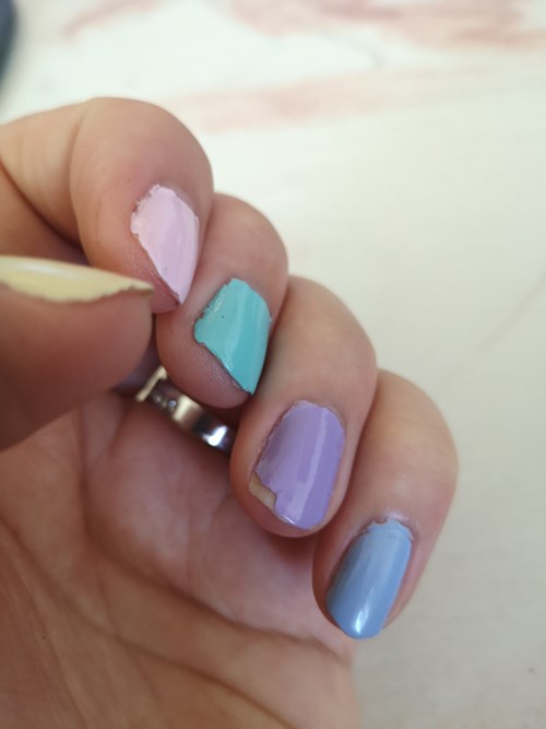 På bilden har jag haft lacket i två dagar, inte skyddat naglarna med annat än underlack (Depends 7-days som är det bästa underlacket jag hittat) och överlack (Seche Vite) och arbetat som vanligt. Jag har två lager, för att fått full täckning behövs tre lager för det gula och rosa lacket men det är samma för alla märken. För att vara ett billigt lack är det helt klart värt pengarna, jag har en onödigt stor samling av nagellack (flera hundra) så jag har testat många 🙂 - Inlägget skapades 1 år