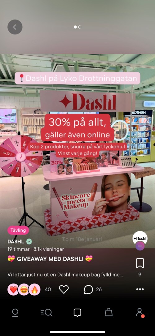Vi lottar just nu ut en Dashl makeup bag fylld med produkter till ett värde av 1350 SEK! Se nedan regler för denna giveaway: ✨Steg 1: Följ Dashl här på Lyko Community + kommentera på detta inlägg ✨Steg 2: Ta en screenshot på första bilden från ytan i detta inlägg och posta på din Lyko Community. Glöm inte tagga oss! ✨ Steg 3: Skicka ett DM till oss på Instagram (@dashl) och berätta vad du heter på Lyko Community så vi vet att du är med och tävlar Vi kommer att kontakta vinnaren via DM på Instagram den 19e januari från vårt officiella konto! Let’s gooooo! 🤩🩷 #dashl #tävling #tävla #giveaway - Användarens roll: Lyko Creator.Inlägget skapades 1 månad315 visningar