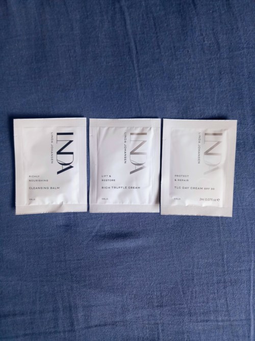 Har testat detta kit med hudvårdsprodukter från Linda Johansen och har lite blandade känslor. Kitet kändes mycket lyxigt när man fick det och jag tyckte om flera av produkterna, men har dock lite åsikter om andra. Kommer att recensera varje produkt som kom med enskilt först och sedan summera min generella upplevelse av kitet. Innehåll i kitet 🌹 - Face Saver Mask (100 ml, full storlek) - 24k Gold Serum (10 ml, resestorlek) - Cleansing Balm (2 ml, påse) - Rich Truffle Cream (2 ml, påse) - TLC Day Cream SPF30 (2 ml, påse) - Mikrofibervante, 2st - Borste för ansiktsmask Observera att ”Magical Peel” har bytts ut till ”Rich Truffle Cream”. Min hy 🌸 - Har kombinerad yttorr hud med som snabbt blir oljig, speciellt i T-zonen. - Känslig och akne-benägen. Cleansing Balm 🌻 - En balm-cleanser som övergår till olja efter att man masserat in den i huden. Luktar gott och känns snäll mot huden. - Löser upp foundation och concealer utan problem. Har dock haft lite problem med att få bort all mascara. - Upplever att det är svårt att få bort all produkt från ansiktet och att det känns som en oljig hinna kvar på ansiktet efter man tvättat ordentligt. Detta undviks dock ganska bra vid användning av den mikrofibervante som hänger med i kitet, vilket var bra. - Lägger sig som en smutsrand i handfatet efter användning av cleansern som inte går att skölja bort, utan man måste använda sig av rengöringsmedel (se bild), vilket är väldigt störande. Face Saver Mask 🌻 - Superhärlig mask som kommer ut som en gel men som blir till skum på ansiktet. - Masken är lätt att applicera med den borste som medföljer, vilken jag älskar! - Produkten luktar väldigt gott och huden känns riktigt ren och återfuktad efter man torkat bort den med mikrofibervanten. - På instruktionerna står det att masken börjar löddra efter ca 5 min. På mig börjar masken löddra direkt efter att jag applicerat den. Har fortfarande har på den i ca 5 minuter, så vet inte om det är jag som gjort något fel eller att den bara reagerar annorlunda på min hud. Oavsett så tror jag inte att det skulle påverka resultatet. 24k Gold Serum 🌻 - Nä men alltså LYX i en liiiiiiiten flaska. - Upplever ett direkt glow efter att man applicerat serumet och de faktiska guldflagorna gör att serumet känns sååå lyxigt. - Huden känns återfuktat samt ren och fräsch Rich Truffle Cream 🌻 - Tjockare kräm som ändå sjunker in snabbt i huden. - Innehåller retinol, vilket jag tycker om. - Helt enkelt en trevlig nattkräm. TLC Day Cream SPF30 🌻 - Återfuktande - Känns och luktar dock som vanlig solkräm. För det priset som krämen har för full storlek så förväntade jag mig nog lite mer. - Tycker inte att krämen riktigt sjunker in i huden Sammanfattningsvis 🌼 Generellt är jag riktigt nöjd med kitet. De produkter som jag skulle vilja rekommendera är Face Saver Mask och 24k Gold Serum. Tycker även att de mikrofibervantarna man fick med kändes riktigt lyxiga och hjälpte som skrivet med att få bort all produkt och smink vid rengörningen. Även borsten till ansiktsmasken bidrog till lyx-känslan i kitet. De produkter jag inte är lika övertygad om är Cleansing Balm och TLC Day Cream. Då priset är ganska högt hade jag personligen velat ha någon utan produkterna som kom i påse i antingen fullstorlek eller mindre resestorlek. Även om jag personligen inte var särskilt nöjd med TLC Day Cream så hade jag föredragit att den medföljande dagkrämen i kitet gick att använda mer än 2 gånger. Sammanfattningsvis finns det både ris och ros med detta kitet och får därmed 3/5 stjärnor av mig. #testbylyko #lindajohansen1 produkt i inlägget Lyx som ger blandade känslor78 visningar - Användarens roll: Lyko Creator.Inlägget skapades 3 årBetyg: 4 av 5Verifierad testare