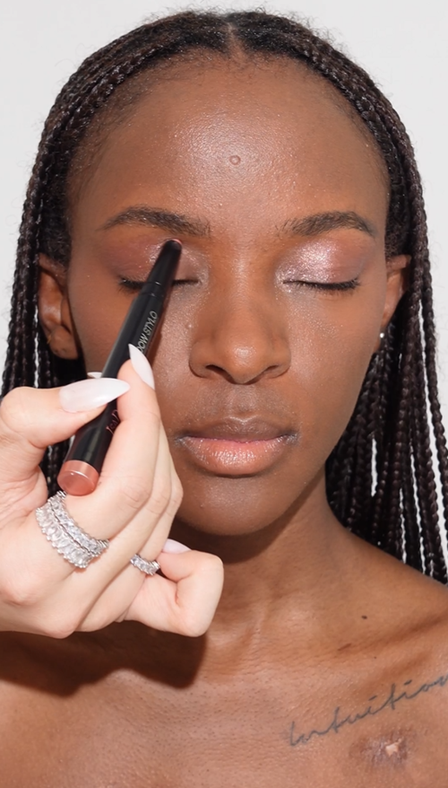 Stråla lika vackert som vår fina modell! ⭐ Tack vare IsaDora Longwear Eyeshadow Stylo får du till en festlig ögonsminkning på sekunder. Spana in videon! Applicera lite body shimmer, parfym och örhängen för en extra kvällstouch. #makeup #smink #isadora #lyko #lipgloss #glow #eyeshadowstick #look #sminkning #trend #lykosocial #mascara