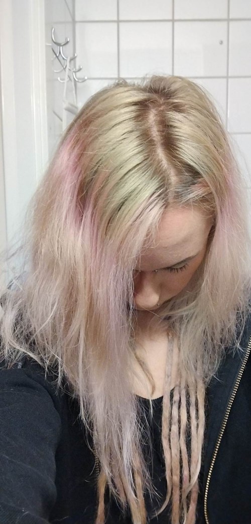 Jag tänkte försöka färga ner min utväxt så den fadear ihop med mitt resterande rosa hår. Min utväxt är en naturlig svensk mörkblond, råttfärgad. Jag färgade med mood mellan askblond och håret blev ljust grågrönt, typ. Den var uppenbarligen för ljus men det verkar inte framkomma vad det är för mörlhetsgrad på den. Kan jag lägga denna Intensive Creme Color 8 Ljusbrun över? Jag förstår att jag behöver något rött pigment i färgen men vill fortfarande att slutresultatet inte ska vara för varmt, då min utväxt är mer gråbrun. Jag vill också ha en färg som är mörkare än den tidigare som blev aldeles för ljus. Hade denna fungerat för det? Eller någon annan? Tack1 produkt i inlägget Grön utväxt4881 visningar- Användarens roll: Frisör på Lyko.Kommentaren lades 2 årHalloj Janie! 🤗 Mood 34 - mellan asklond ligger på ljushetsläge 8 och nyans ask - som har blåa pigment, så var du guldig innan du applicerade den är det därför det blev grönt. 🙈 (blått + gult = grönt.) Creme Color 8 Ljusbrun ligger på ljushetsläge 6 så du kommer då bli mörkare. Jag skulle rekommendera att du förpigmenterar de gröna paritet med denna så att dessa toner neutraliseras. 👉🏼 lyko.com/sv/cutrin/cutrin-apricot-mousse-200-ml Applicera den noggrant och föna in den, sedan kan du använda dig av denna toning för att få en liknande ton som din naturliga färg. 🥰 lyko.com/sv/schwarzkopf-professional/schwarzkopf-igora-vibrance--7-422 Lycka till i hemma salongen och ha en fortsatt bra dag. 🌺1 gillar
