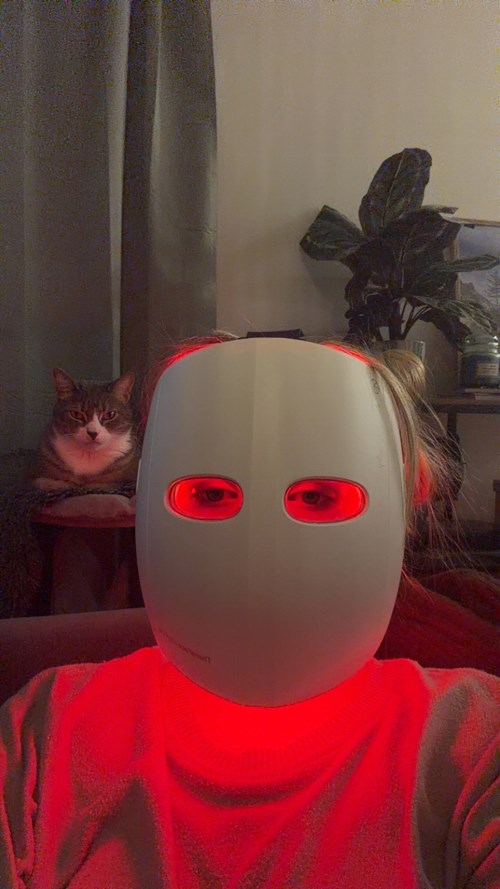Jag har som #lykoinflutester fått turen att testa denna LED mask med inbyggd massagefunktion med tre olika ljusinställningar: Rött ljus- hjälper att reducera fina linjer, rynkor och mörka fläckar Rött+ infrarött ljus- stimulerar kollagen produktion och förbättrar hudens fasthet Blått ljus- hjälper att bekämpa bakterier som orsakar mild till moderat akne. Jag blev oerhört taggad på att testa denna produkt då jag nu närmar mig 30 års åldern och har börjat få lite antydan på fina linjer pch rynkor speciellt vid pannan samt lite "jowls" vid munnen och smillinjer runt näsan. Jag har även ganska röd hy pga mild rosacea och känslig hy. Ibland får jag akne och har en tendens till att klämma finnar och pormasker som lämnar röda fläckar märken. Min förväntan var att denna skulle hjälpa mig att få en jämnare mindre röd hy och förhoppningsvis fastare hy med lite mindre synliga rynkor/fina linjer. Mitt första intryck av produkten var att den kändes väldigt rejäl(lite tyngre än förväntat). Till skillnad från andra masker jag kikat på tidigare var denna ej flexibel. Jag hade lite problem med passformen i början då jag tyckte den satt lite för hårt och om jsg inte spände åt kände jag att den satt lite för löst och ögonen blev inte lika skyddade, men det var en sak som jag fick ordning på efter några användningar. Jag tycker dock fortfarande att den sitter lite tight vid ögonen pch pannan och kan ibland få lite märken efter använding men inget som består och masken sitter ändå bekvämt. Massagefunktionen var något som jag använde väldigt måttligt och sällan i början då det var lite obehagligt, ljudet och vibrationen påmminer om eltandborste. Men under de 6 veckor jag har fått testa den så har jag iallafall kontinuerligt använt den på mellersta läget i kanske 4 veckor. Nu är det inget som jag stör mig på tvärtom, det är ganska avslappnande. Så det är en vanesak. De inbyggda ögonskydden kan man ta bort och tvätta av vilket är super, också lätt att ta bort. Själva masken på ansiktet känns inte speciellt tung och jag har tittat på tv, diskat, städat och det ända är att det blir lite ljudstörningar men inget som påverkat mig. Det gör att man kan klämma in den i sin kvällsrutin lite när som och det blir mer tidseffektivt. Att den var heltäckande och det inte fanns ett hål för munnen var inget som störde mig speciellt mycket då programmet bara var 12 minuter långt, däremot vis vissa tillfällen om man har sprungit runt och är lite flåsig så upplevde jag att det kändes lite som brist på syre/eller blev varmt att andas, så rekommenderar att sitta ned och ta det lugnt för maximal komfort. En naxkdel med själva användadet som har påverkat mig några gånger är att den varnar inte om lågt batteri innan programmet startas igång vilket har gjort att den har stängt av sig mitt i ett program vid några tillfällen. En sån funktion hade underlättat väldigt mycket och man slipper ladda och slita ut batteriet i onödan. Vi har även fått lite skratt här hemma då masken ser lite ut som en hockeymask. Till själva resultaten: Jag har försökt att använda masken dagligen under provperioden 31 januari till 24 mars idag. Jag har kanske totalt missat att använda den 4-5 gånger så jag har ändå använt den väldigt regelbundet. Utan att jämföra med bilder så kände jsg ingen större skillnad de första 2-3 veckorna, därefter började jag känna att hyn kändes lite mer spänst utan att den kändes stram eller torr. Jag har försökt att ta så bra före och efter bilder som mäjligt samt några bilder vid runt 2 veckors användning och man ser inte någon jättestor förändring men denna typ av produkt kräver lite längre användning för att få tysligare resultat. Det jag har märkt nu med jämförelse bilder utöver fastare hy är att mina fina linjer/rynkor på pannan har blivit lite mindre synliga när jag spänner pannan. Något som jag inte vet om det hänger ihop med fastare hy eller andra livsvanor är att jsg tycker att min haka är mer definierad, kan bero på massage, att sitta i en position med masken eller så har hyn blivit mer fast och mindre svullen. Jag har iallafall under provperioden sett att min käklinje och haka har blivit mer definierad. Detta såg jag även för 2-3 veckor sedan. Jag tycker även att jag har märkt en väldigt minimal skillnad i hudstruktur, lite mindre "kornig" och subtilt lite mer slät. Annars är det främst fastheten som jag har fått som resultat av denna produkt. Precis i början av provperioden hade jag ett litet mer envist utbrott av finnar runt mun/haka samt näsryggen och har haft det under provperioden också men tycker att de har gått ned och läkt väldigt fint på vissa ställen. Skulle dock inte säga att jag sett någon större skillnad kring det pga masken. Möjligtvis att den har reducerat lite akneärr som jag hade runt munnen sen innan då jag upplever hyn runt munnen slätare. Jag ska fortsätta använda denna dagligen för att se om jag ser någon ytterligare förändring och så uppdaterar jag denna recension. Om du vill minimera fina linjer få lite slätare pch fastare hy så tror jag att du kommer tycka om denna produkt! Vet inte om jag hade lagt 4K på denna mask men om den fortsätter reducera fina linjer och ökar fastheten i hyn så är det definitivt något jag hade tyckt var värt. Har varit i spåren att börja med Botox men nu tycker jag ändå att hyn känns väldigt spänst så vill ge denna ett go då det känns som ett säkrare och skonsammare alternativ. Denna produkt är verkligen ingen quickfix och det krävs lite tålamod och resultaten beror lite på användaren.