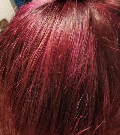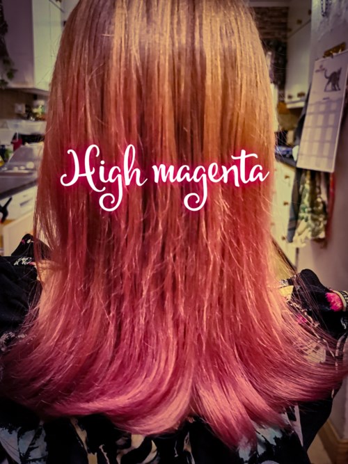 Wella Color Fresh Create High magenta Supernöjd med dessa färger!! Jag låter i regel färgerna sitta i lite längre för att få en riktigt djup färg. På bilden är nedre delen av håret färgat med "High magenta" och övre delen är ofärgat. #tävling1 produkt i inlägget Supersnygga färger!!8219 visningarMadeleine