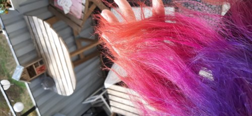 Jag har använt Directions Fire (orange) längst ut i topparna, Manic panic cleo rose (cerise) i mitten och Directions Plum (lila) närmast min naturliga hårfärg. Håret är blekt innan. Färgerna ger fint resultat som håller rätt länge (åtminstone om man tvättar sällan, och jag använder dessutom bara balsam och inte schampo - det dödar extremtoning jättefort) och jag brukar låta färgen sitta i foliepaket i håret i ett par timmar eller så länge jag orkar vänta. Blir som en inpackning, håret är blankt och mjukt efter! Rekommenderar verkligen Directions färger, särskilt om man vill testa något nytt eller använda flera nyanser eftersom de är så billiga. Rekommenderar dock att man googlar färgen man vill ha eftersom de konstgjorda hårtesters på bilderna inte alltid visar hur det blir på riktigt hår.1 produkt i inlägget Färgglatt!7275 visningar