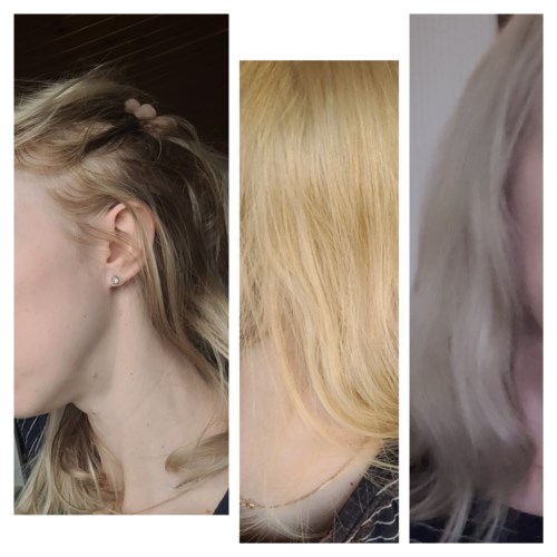 Har friskt och naturligt ljusblondt hår och ville bara få en aning kallare ton. Blev rekommenderad 10.1 av butikspersonalen på lyko. Har nu inslag av skarpt blå toner i längderna där solen blekt håret i somras och detta blev efter halvtorrt hår med 10 min behandling. Kommer aldrig mer använda. Eftersom det är långt till närmsta butik som inte är en matbutik fick min man köpa ketchup samt head and shoulders vilket, efter 10 min behandling av vardera, gav något bättre nyans men fortfarande toner av blågrå i längderna. Hoppas det försvinner snart, annars får jag köpa avfärgningsschampo. Är så besviken och står här med snustorrt hår. Hoppas inpackning hjälper annars får jag klippa håret. Det mörkare/blötare håret är innan toningen.1 produkt i inlägget Kan ej rekommendera2550 visningar- Användarens roll: Frisör på Lyko.Kommentaren lades 10 månaderHej Marie! ⭐ Tack för att du tar dig tiden att recensera toningen, det är aldrig roligt att få oönskade toner i sitt hår! Som vi har kommit överens om på mailen kan du tvätta ur de blåa pigmenten med Kevin Murphy maxi wash 🥰 De bör försvinna efter någon tvätt då de inte satt sig så djupt i dina strån 🤍 Ha en fin eftermiddag ☃️