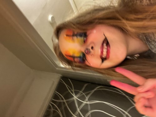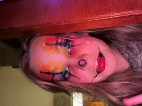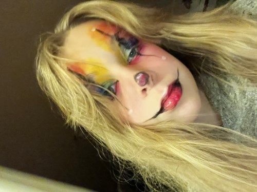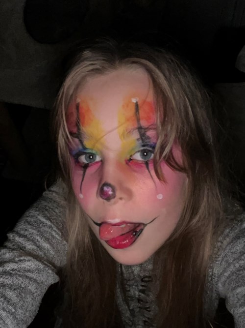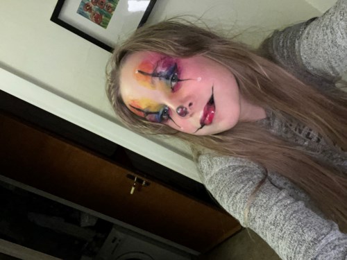 Jag har gjort en färgglad clown halloween sminkning som jag tycker är super cool