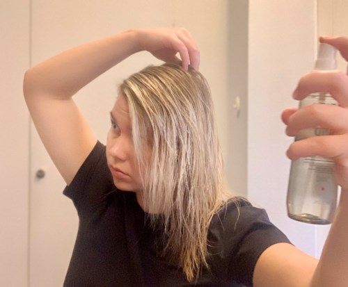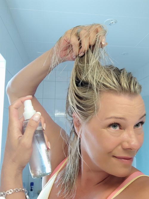 Skaka noga. Spraya på handdukstorkat hår. Skölj ej ur.