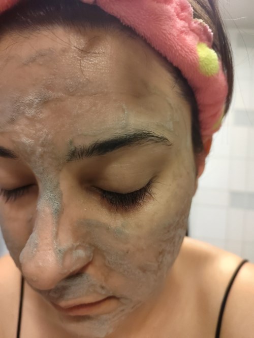 3. Låt masken verka i 5–10 minuter eller tills ditt ansikte är täckt av skummande bubblor.