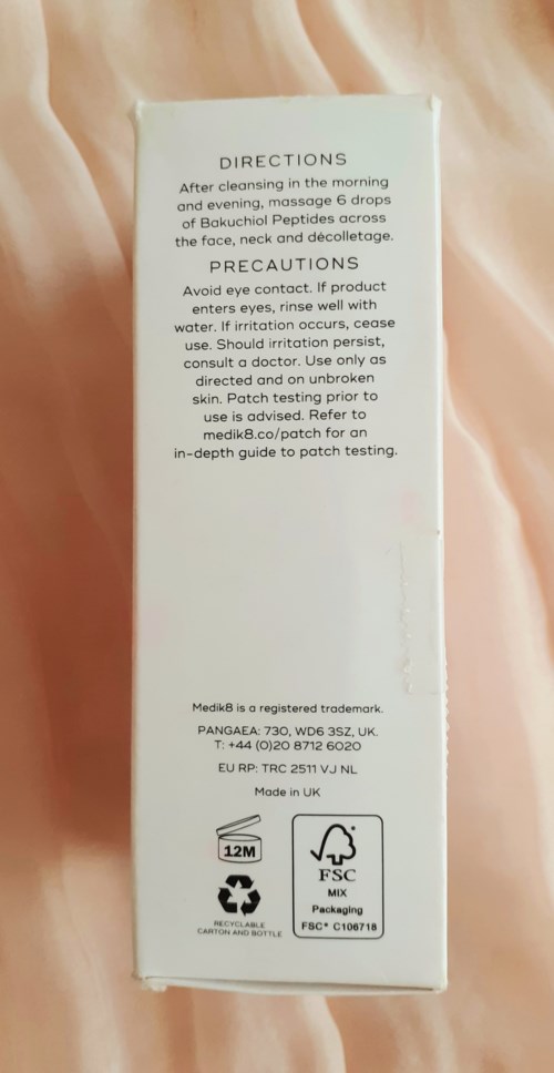 BAKUCHINOL: Medik8 använder ren bakuchiol (du får 1,25% aktivitet). Härstammar från växten Psoralea Corylifolia. Ett antiagingalternativ till retinol, perfekt för känslig hud som inte tål A-vitamin. Studier visar att bakuchiol ger liknande resultat i kollagenstimulering och hudföryngring som retinol.