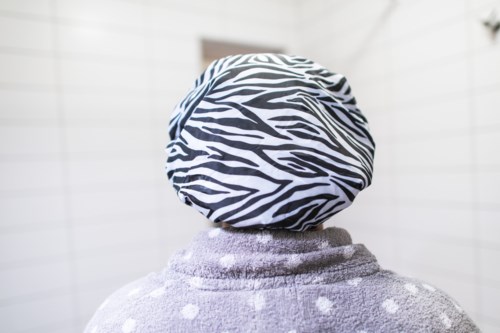 Använd för att hålla håret torrt vid bad/dusch eller intensifiera återfuktning vid användning av balsam eller hårinpackning genom att ha duschmössan på efter applicering.