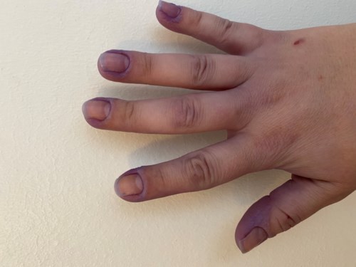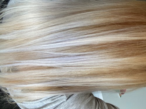 Jätte besviken på denna produkt :( Händerna blev helt lila (bilden är tagen efter att jag försökt skrubba bort färgen) och där mitt hår är som ljusast blev håret lila/blått flammigt (syns mer i verkligheten än på bilden). För det priset hade jag föväntat mig mycket bättre resultat :(218 visningar
