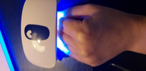 Placera dina naglar under UV LED-lampan, en hand i taget. Tryck på lampans överdel och ha kvar handen tills lampan släcks efter 60 sekunder. Lampan gör att materialet stelnar, vilket både ökar hållbarheten på manikyren och gör att naglarna får en vacker lyster. Tänk på att alla naglar måste in under lampan.