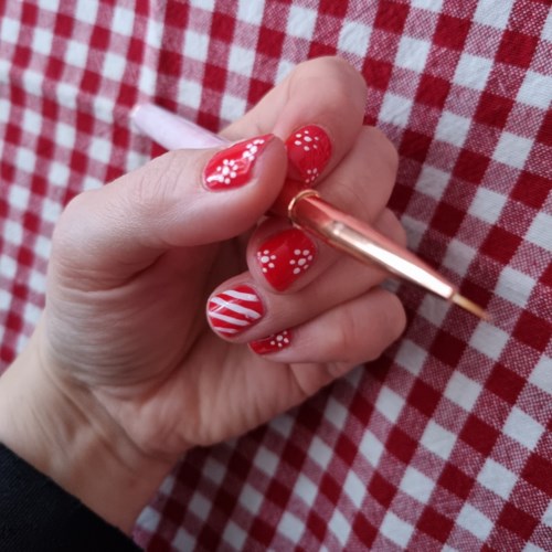 Jösses, det här var ju ROLIGT!!! 🤩💅👏 Som den nybörjare jag är blev det ett enkelt mönster, men känner direkt en akut önskan om att testa mer avancerade grejer. Penseln är tunn och fin och gör det otroligt enkelt att med precision skapa de mönster man önskar. ...en stadig hand och skopa fantasi är det enda som behöver tillsättas. ...och hörni, har ni sett så SNYGG penseln är!? Älskar den ljusrosa marmorerade hylsan! 😍🥰 På bilderna har jag utöver penseln använt #LeMiniMacaron Cherry Red och #Essie Blanc 01. #testbylyko1480 visningar- Kommentaren lades 3 årMen så fiiiint!!!! Supergulliga naglar verkligen!!! Grymt gjort Maria 💖💖💖2 gillar